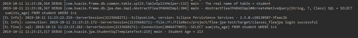 LOGGER.debug("Student Count = {}", FleaJDBCHelper.querySingle("select_2", student)); }